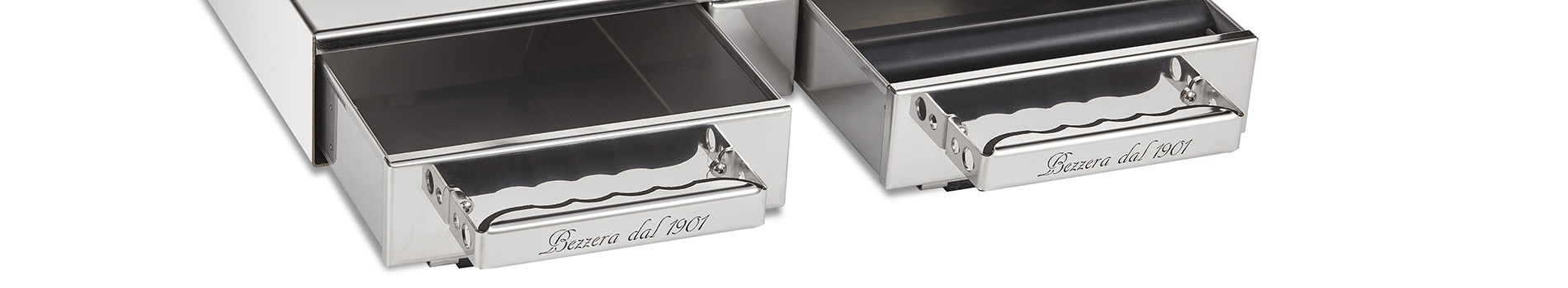 Drawer in steel plate AISI 304 for coffee machine and coffee grinder with coffee grounds knoker hose