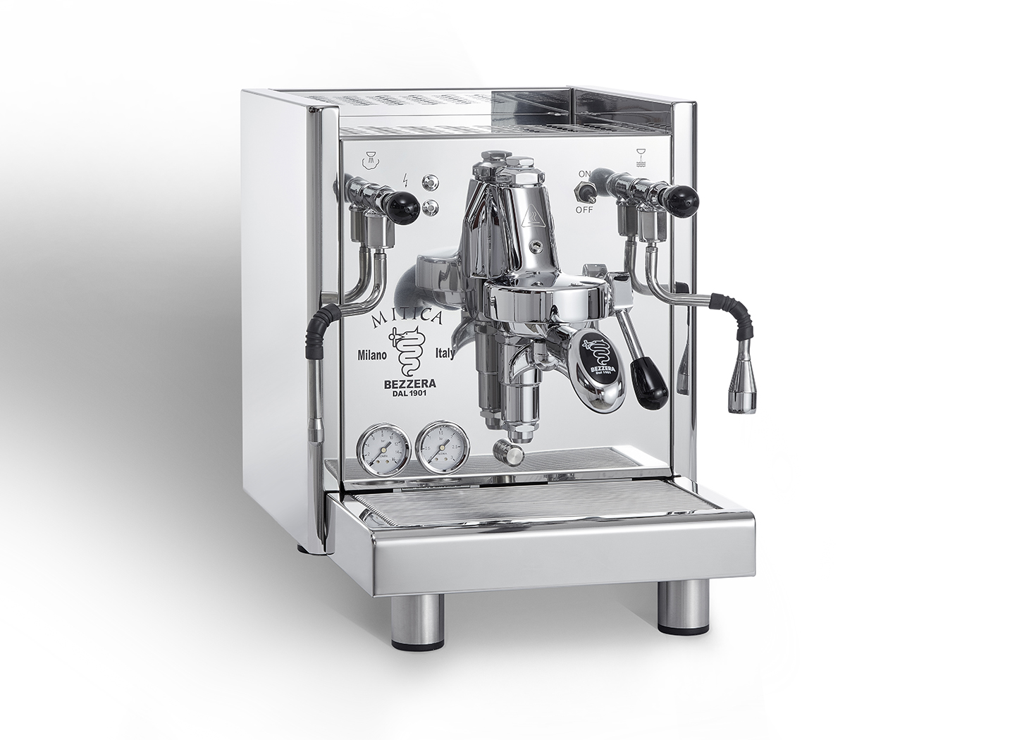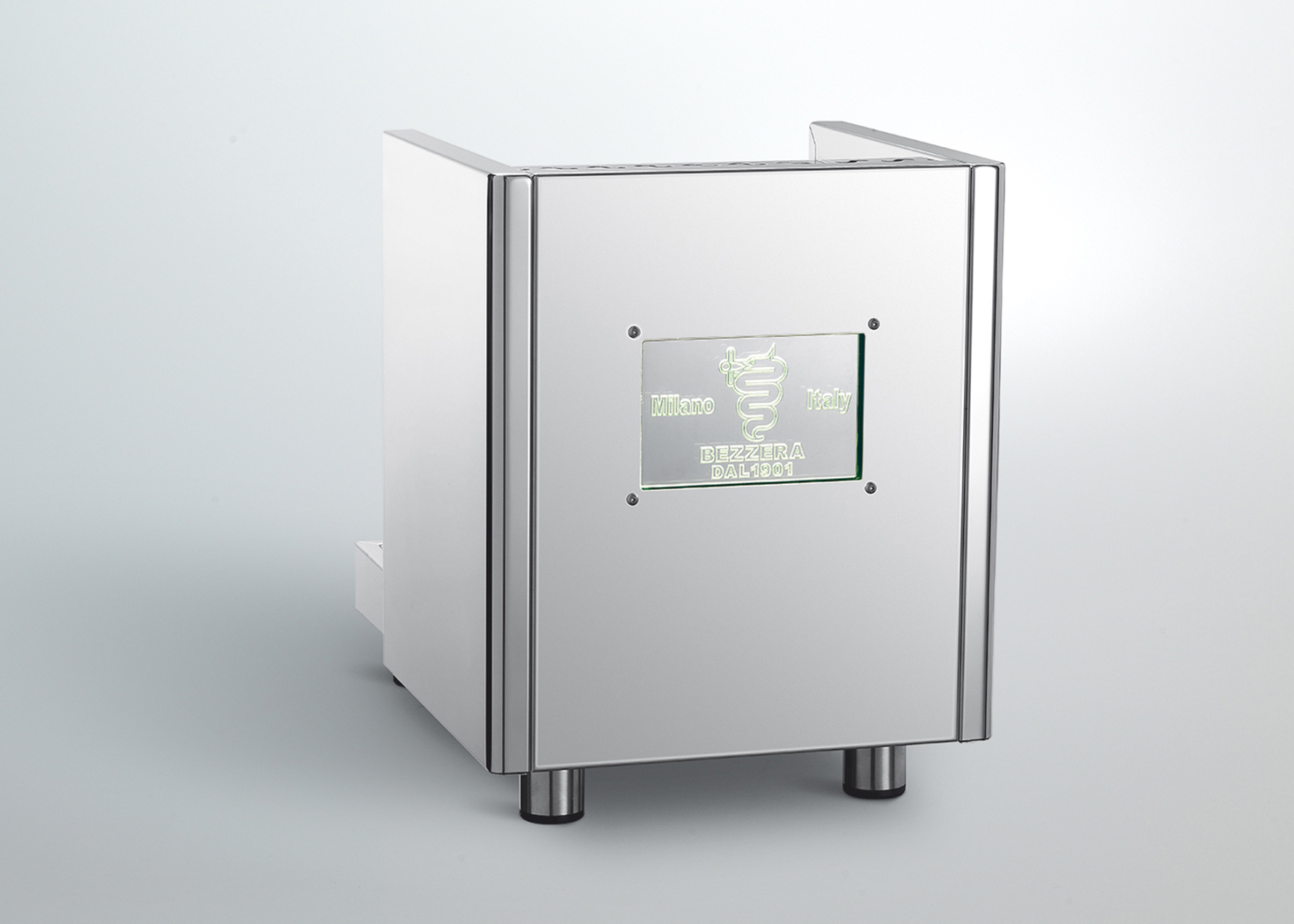 Cuerpo en acero inoxidable AISI 304 (14301), grupo calentado por el sistema termosifónico, caldera de cobre con intercambiador de calor interno para la producción simultánea de café, vapor y agua.